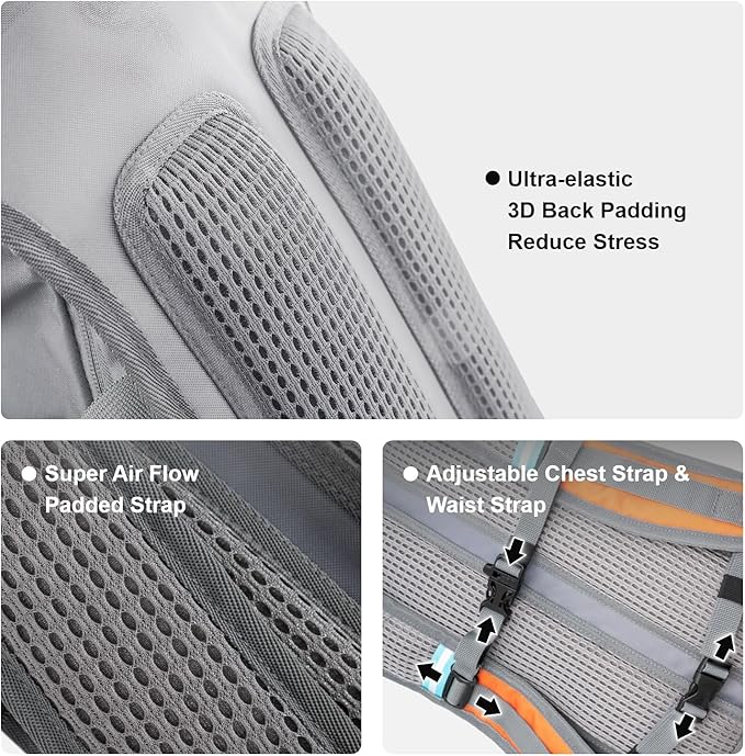 - HIKING/CYCLING/RUNNING/SKIING WITH EASE: This 2 lbs lightweight water backpack features an ultra-elastic 3D breathable padded back, adjustable chest and waist straps to provide comfort and stability for all body sizes. This day pack has got you covered for all your adventures.