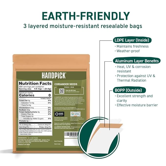 HANDPICK Whole Coriander Seed (283g/10oz) Premium Grade | Pure & Flavorful Coriander Seeds - Indian Origin | Non GMO, Gluten Free | Perfect for Cooking & Seasoning | Resealable Ziplock Pouch