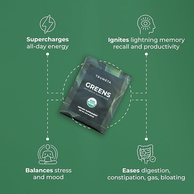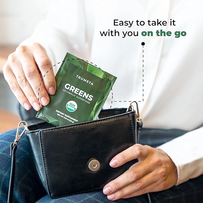 - 100% ORGANIC FORMULA - Trumeta greens powder packets is certified 100% organic by the USDA. And with 33 delicious fruits and vegetables, our greens and reds superfood powder tastes amazing! Plus, our organic super greens powder dissolves in water in seconds, so it's easy and convenient to take on the go.
