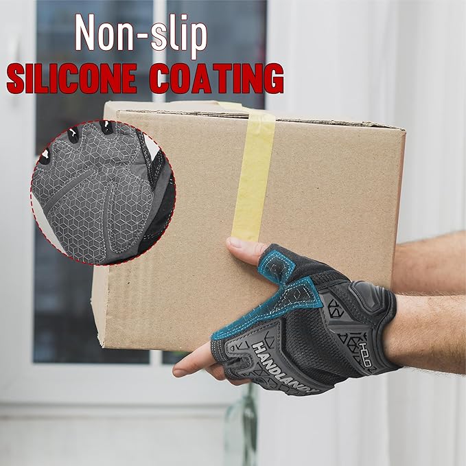 - Upgraded Padded Work Gloves with Grip for Enough Grip Power: Tired of tools slipping out of your hand? You need these grippy moving gloves! No more boxes slide out of your hands! The silicon coating at the palm provides a secure grip, you can easily pick things up. Cushioned enough in the palms that they provide good impact cushioning when doing repetitive tasks like hammering/ jack-hammering, good protection when moving lumber piles, etc.