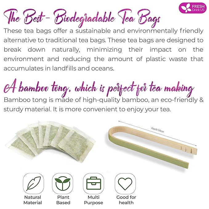 - ☘️ BIODEGRADABLE TEA BAG - NATURAL MATERIAL: The tea bags are made of natural corn fiber, which is friendly and nice for the environment. No Strings. No Wrapped. No Staples. No Adhesive. No Bleach. No Dyes - 100% Safety.