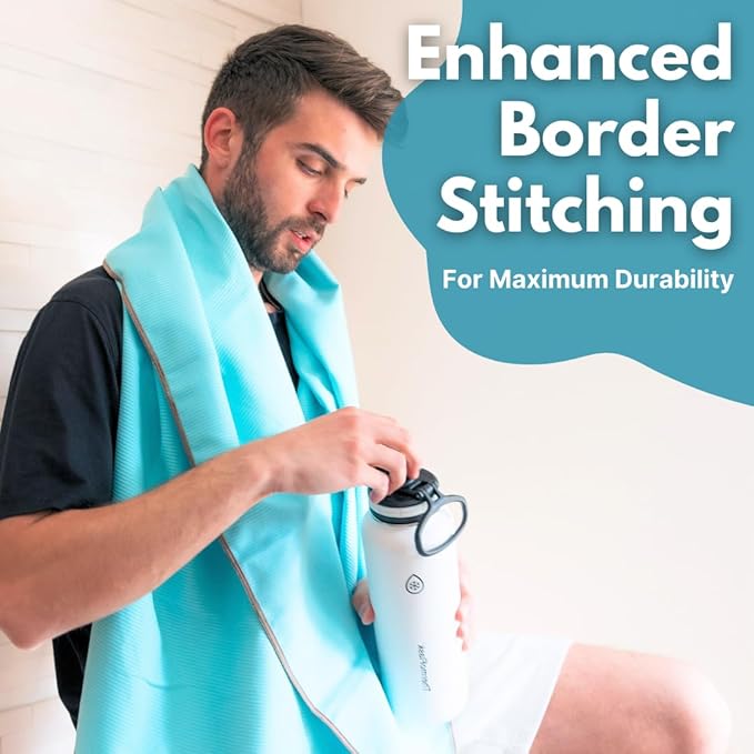 ECCOSOPHY Microfiber Beach Towel – Quick Dry Gym Towel, Highly Absorbent with Ribbed Texture, Lightweight – Ideal for Travel, Pool, Yoga, Fitness & Outdoor Adventures – 40x20 Aqua