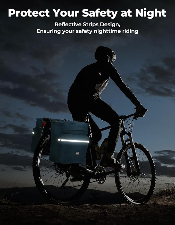 - Large 34L Capacity: This KEMIMOTO pannier bike bags has been upgraded to a large capacity of 17L per bag, and the total capacity of 2 bags is UP to 34L. Includes 2 main compartments for each bag. Plus the 2 pockets on the outside, ideal storage for ebike accessories, daily essentials, biking gear. Ideal for grocery, commuting, and outdoor trips