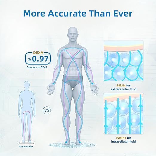 - FSA & HSA Eligible/LOCATE YOUR FAT: Our body composition scale for body weight and fat percentage is equipped with 8 electrodes (4-foot electrodes on the scale and 4 hand electrodes on the handle), independently measuring and analyzing five parts of the body: left arm, right arm, trunk, left leg, and right leg. This allows for accurate pinpointing of fat and muscle distribution, helping you to target your workouts effectively and achieve a better body shape with half the effort