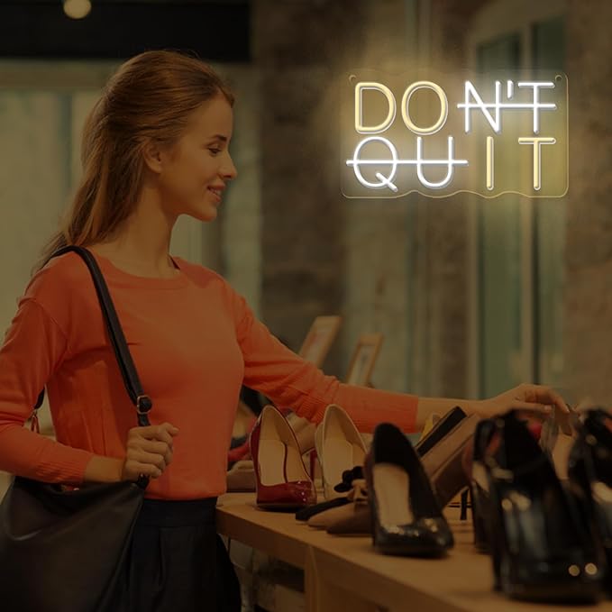 - 【 Make Your Home More Perfect 】The neon sign of Don't Quit emits a romantic and gentle glow, accompanied by the words "Don't Quit", adding warm colors to your room and creating a romantic atmosphere. It is perfect for giving encouragement when you exercise or work. Neon lights are an ideal highlight for home decoration or gatherings, adding color and romantic atmosphere to a simple life.