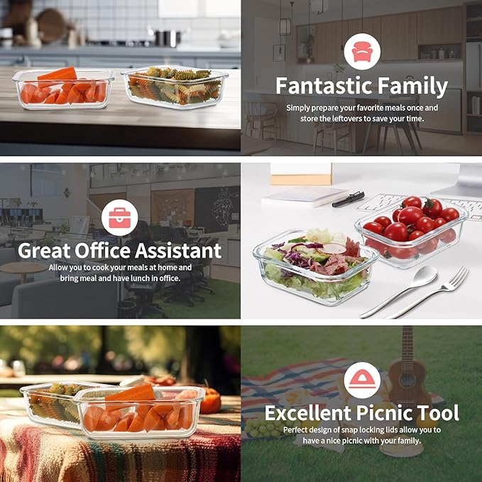- [Oven, Microwave, Freezer Safe] Durable borosilicate glass containers designed to go from freezer to oven, containers are great for meal prep, leftovers, cabinet storage, and more, make meal prep simple and easy.