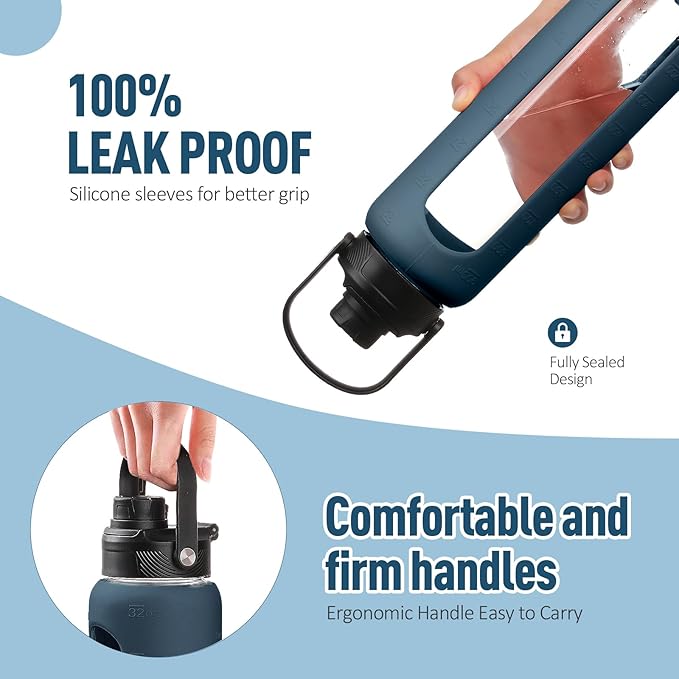 - 24 OZ AND 32 OZ VOLUME FOR OPTIONS - We have 2 sizes for those glass drinking bottles. The 32 oz glass water bottles are perfect for those who require a larger volume of water throughout the day. With this 32 oz bottle(1 liter water bottle), you can stay hydrated without the need for frequent refills. For those seeking a slightly smaller option, we offer the 24 oz glass water bottle, which is ideal for individuals who prefer a more compact and lightweight bottle.