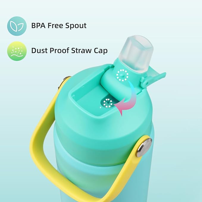 - Leak-proof and dust-proof straw design ensures beverages stay securely contained.You can close the spout after taking a sip.Non-sweat bottle exterior prevents condensation, keeping your hands dry