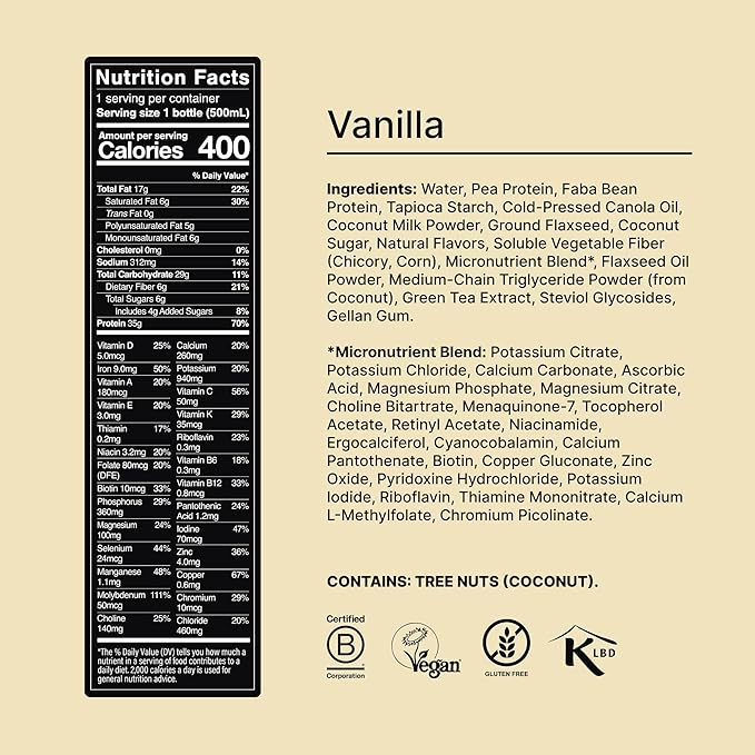 - EATING HEALTHY NEVER TASTED SO GOOD: Ready-to-drink is available in two delicious flavors, Vanilla and Chocolate. Each one containing real wholefood-sourced ingredients and zero artificial sweeteners.