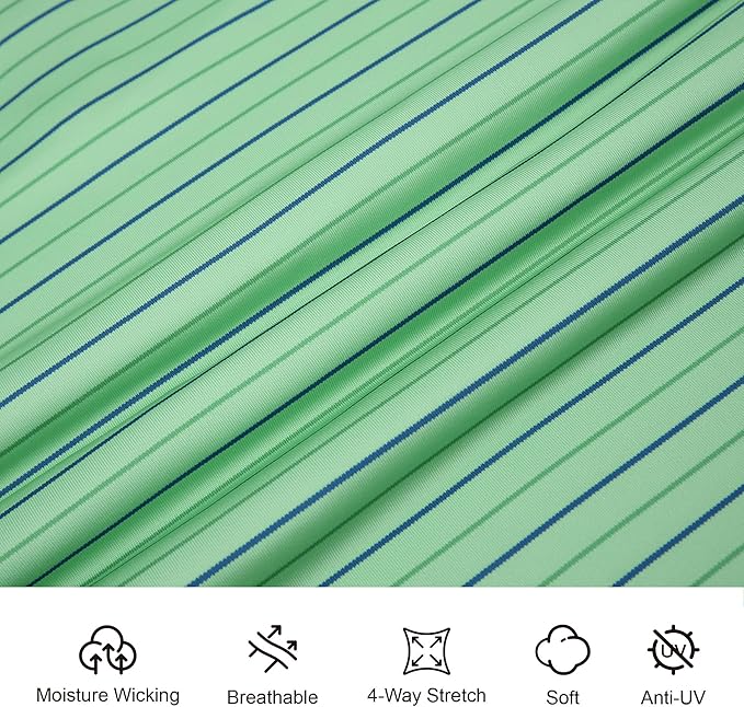 - Performance Fabric: This mens golf shirts short sleeve made from Polyester Spandex Striped, Lightweight, comfortable, quick-dry, moisture-wicking, UPF 30+, breathable for added to its overall comfort.