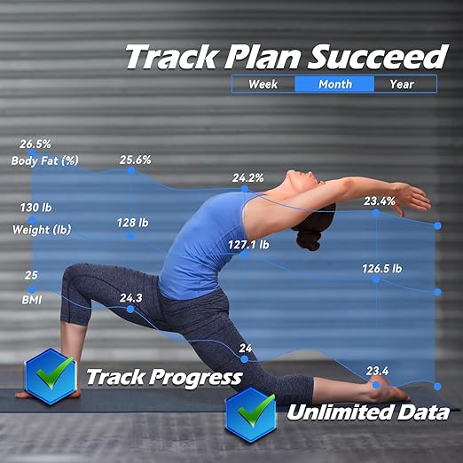 - TRACK PROGRESS AND MANAGE CONVENIENTLY: With the "Fitdays" app, you can view all metrics details & trend charts over days, weeks, months or even years. The Bluetooth scale data in Fitdays sync and compatible with APPLE Health, Fitbits, Google Fit, Samsung Health and other fitness apps. Track and manage your health anytime, anywhere! The smart bathroom scale for body weight and fat percentage supports up to 24 USER PROFILES and data managed independently, perfect for the whole family