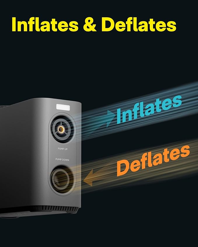 - SMART ALL-IN-ONE AIR PUMP: Are you looking for a versatile pumping solution to handle all your inflation and deflation needs? Try the HOTO Air Pump Master! Equipped with a dual pump system, our electric air pump can efficiently achieve a wide range of pressures (0-150 PSI) or airflow rates (0-350 L/Min) for various tasks. Whether inflating a paddleboard, SUP, inflatable pool, kayak, tent, air mattress, or vehicle tires, the HOTO air pump has you covered