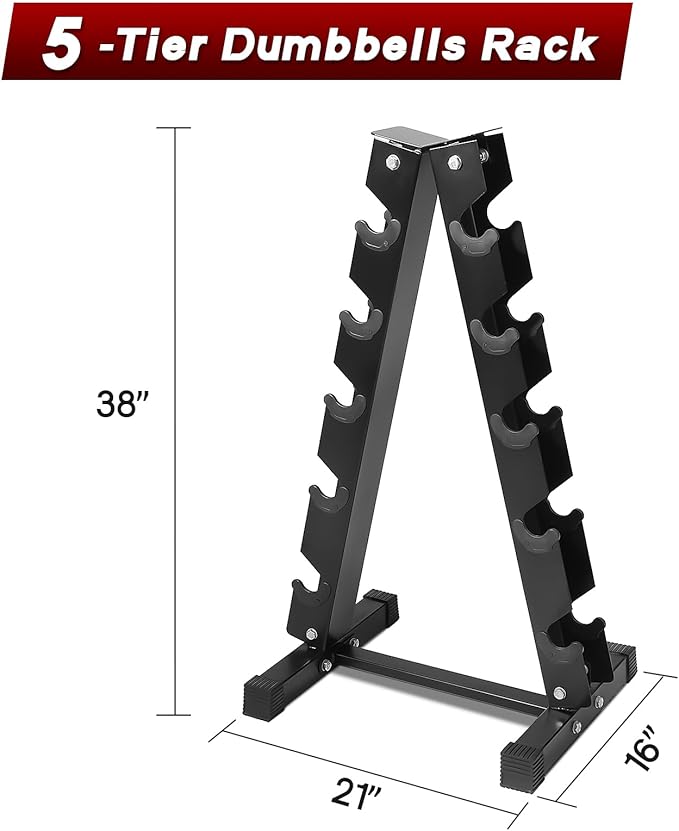 - 【Package Included】:Contains 2X5LB、2X10LB、2X15LB、2X25LB、2X35LB dumbbells with 1 X 5 Tier Rack. A sturdy set of dumbbells can be used for various barbell exercises, and you can choose different combos to vary the intensity of your workouts.