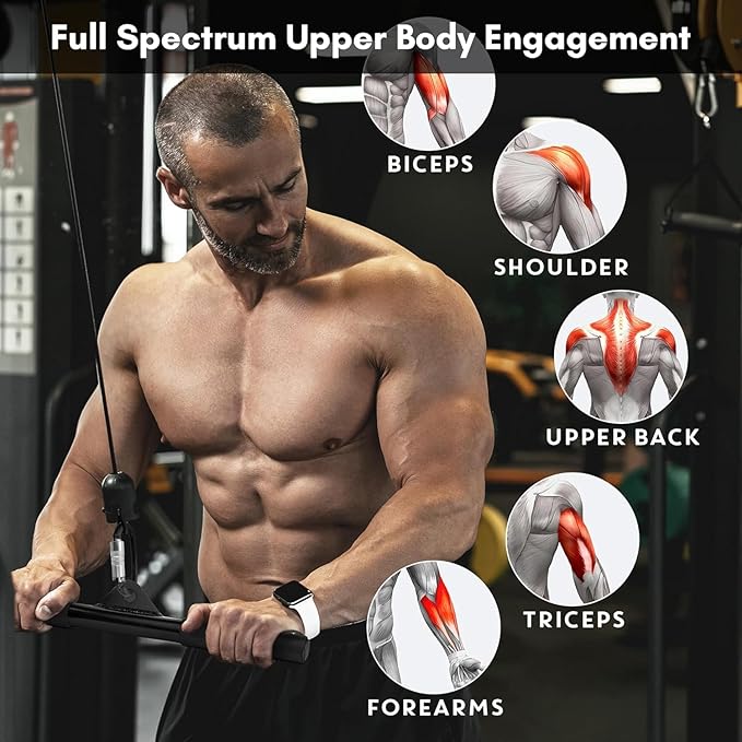 - ๐๐ฎ๐ฅ๐ญ๐ข-๐ ๐ฎ๐ง๐๐ญ๐ข๐จ๐ง๐๐ฅ ๐๐ฎ๐ฅ๐ฅ๐๐จ๐ฐ๐ง ๐๐๐ซ ๐๐จ๐ซ ๐ ๐ฎ๐ฅ๐ฅ-๐๐จ๐๐ฒ ๐๐๐๐ฅ๐ ๐๐จ๐ซ๐ค๐จ๐ฎ๐ญ๐ฌ: Designed for maximum versatility, this cable machine attachment supports a wide range of exercisesโfrom lat pulldowns to tricep extensionsโmaking it an essential tool for comprehensive strength training. Its durable design and adaptable functionality make it a top-performing tricep bar for any gym setup.