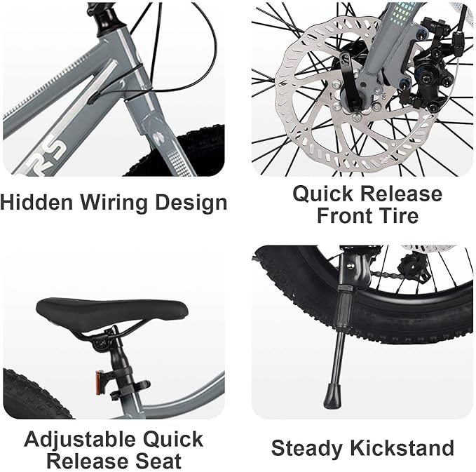 - 【Wider Tires】 20 x 2.8 inch knobby mountain fat tires provide excellent stopping power and tons of traction in sand and snow. This kids bike with soft seat offers more comfort in riding. Kickstand is included.