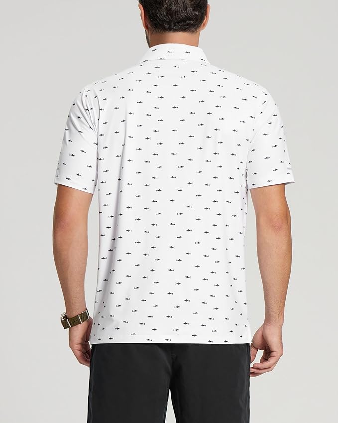 - Style Feature: This golf polo for men use allover print stretch fabric with easy care and keep good shape, well-made stitching.