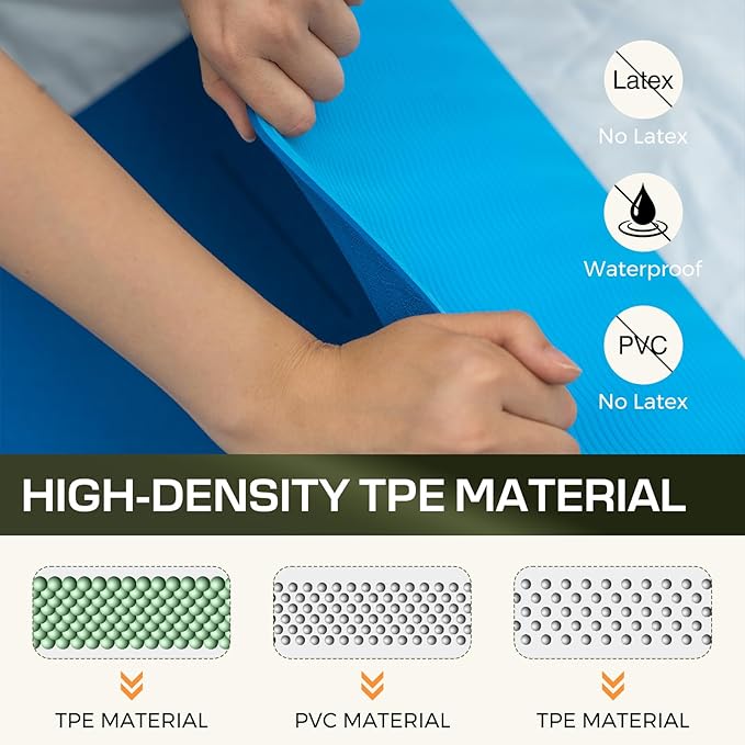 - 【TPE Exercise Mats】We selected TPE material carried out the technical improvements basic on traditional workout mats. Our TPE yoga mats are non-toxic, polymer material waterproof and sweat-proof, and easy to clean, better abrasion than PVC, EVA and NBR mats
