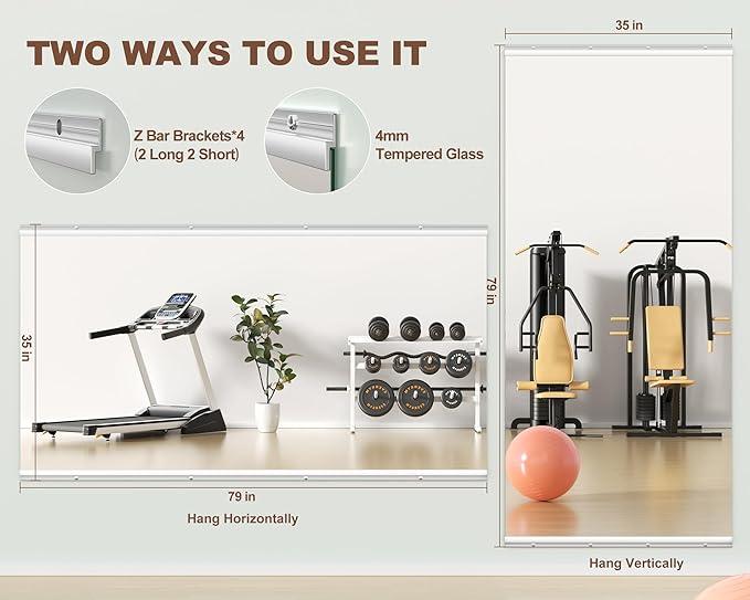 - 💎[Upgrade-Tempered Glass]-Home Gym Mirror uses 0.16-inch thick tempered glass, which is shatterproof and explosion-proof.