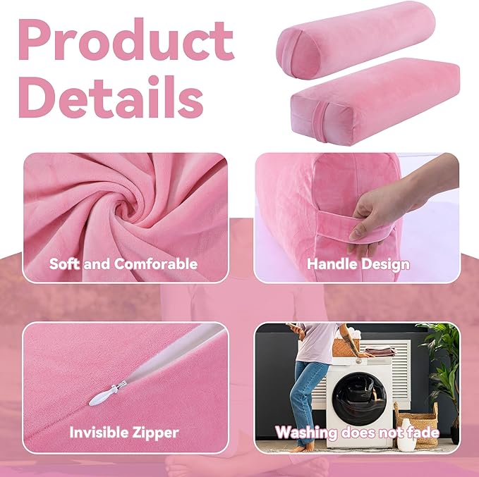 - Velvet cover: Our yoga bolster covers are made of velvet that is skin-friendly, soft and stretchy, and will help you relax quickly, whether you're doing yoga or using it for daily breaks. There is an invisible zipper that can be cleaned by hand or machine after removing the cover, and the handle on one side helps you carry it better.