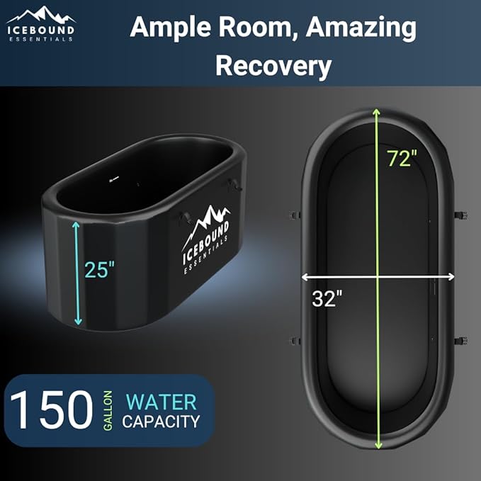 - XL Size Full-Body Immersion: With its spacious 150 gallon max capacity, this XL ice plunge tub accommodates even the tallest plungers, allowing for complete body submersion. Over 6’4”? No problem. Looking to plunge with a buddy? You can do that too.