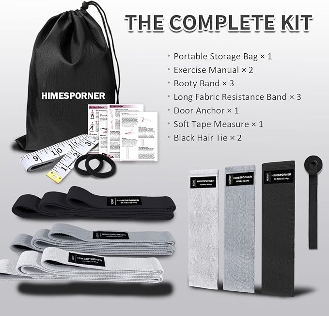 - 【Easy to Carry & Exercise Anywhere】: HIMESPORNER Resistance Band comes with a convenient carrying bag for easy storage and portability. Whether you're at home, at the gym, or traveling, you can work out and get in shape anytime. 2 hair ties in the package help solve the problem of loose hair and make your workout more focused.