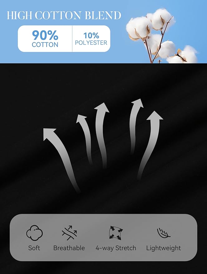 - Stretch Fit for All Body Types: The 10% spandex ensures a flexible fit that moves with your body, offering comfort and freedom, no matter your shape or size.
