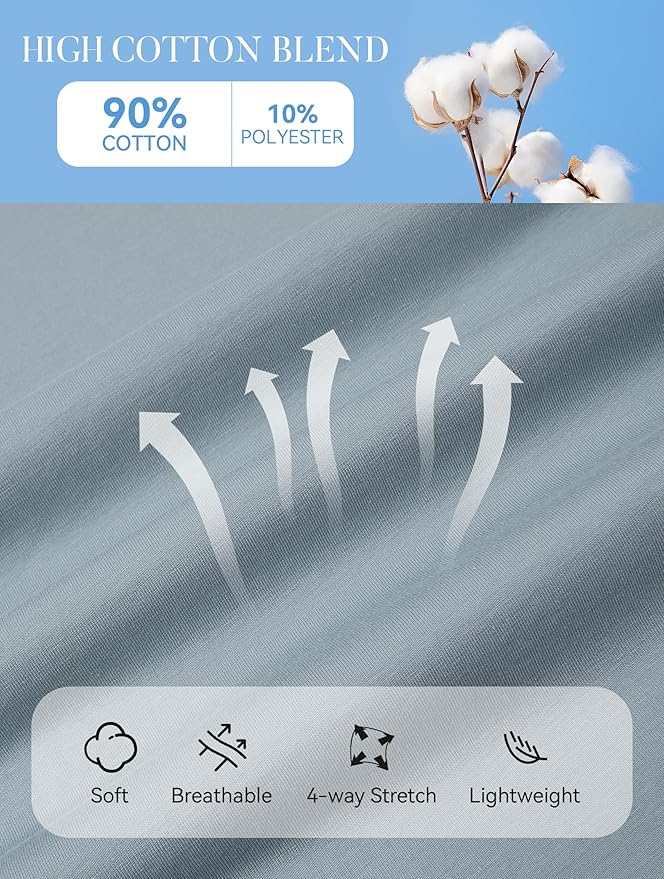 • Stretch Fit for All Body Types: The 10% spandex ensures a flexible fit that moves with your body, offering comfort and freedom, no matter your shape or size.