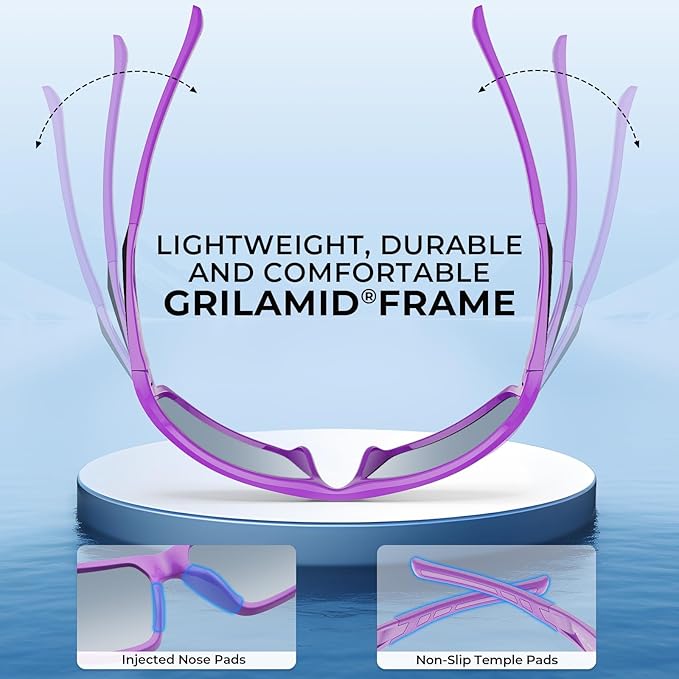 • KEY FEATURES – Impact-resistant polarized 1.0mm TAC lenses reduce glare, Block 100% of harmful UVA and UVB rays, Oleophobic and saltwater resistant lens coatings protect mirror finish, Full wrap frame design, Lightweight, durable, and comfortable Grilamid frames, Non-slip temple pads.