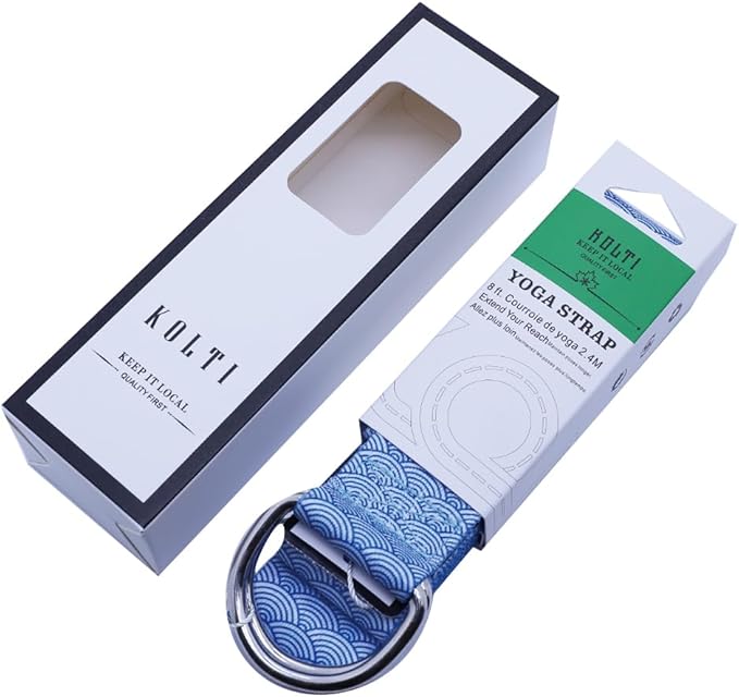 - D-SHAPED BUCKLE DESIGN: Kolti yoga band features an innovative, easy to release & adjustable D-shaped double ring metal buckle, with thickness of 0.3 inches & width of 2.1 inches. It is sturdy and durable, easily able to withstand high-intensity stretching and repeated use, ensuring durability. Compared to rectangular buckles, the D-shaped design is more stable, effectively reducing the possibility of sliding and ensuring your safe practice, making every stretch more worry free.