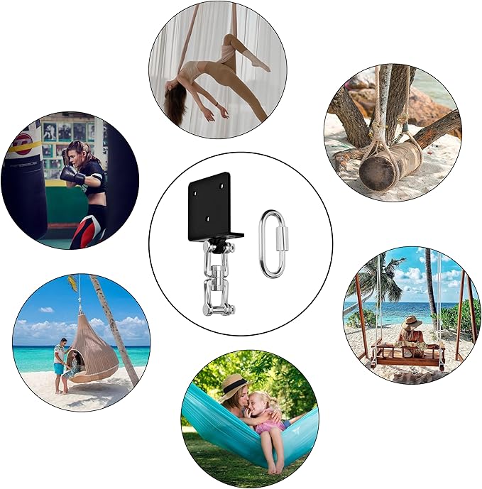 - 【Versatile Usage Scenarios】360 Degree Swivel Designed for heavy duty sandbag chaining and rotation,it is perfect for a variety of venues such as hanging heavy duty boxing sandbags, kickboxing bags, Muay Thai bags, swings, sling swings, swivel seats, or any other swing used for playground swings.