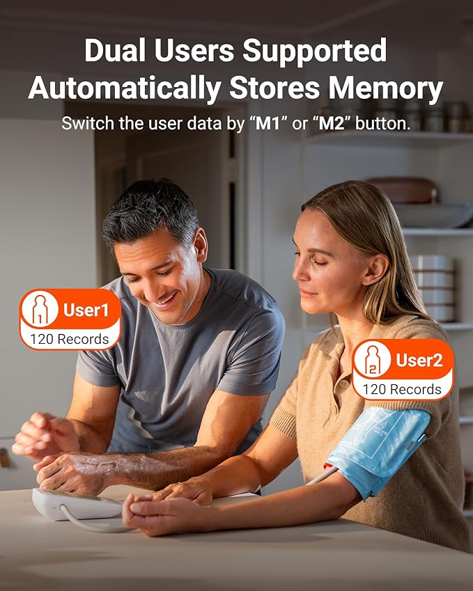 - Bluetooth Blood Pressure Monitor: Sync effortlessly with the free iHealth MyVitals app (ensure your app is up to date) on iOS or Android. Designed for two users, each can store up to 120 readings with unlimited cloud storage. The app automatically generates trend charts for blood pressure and heart rate, making it easy to share reports with your doctor anytime. Whether tracking your own or your parent’s health, iHealth makes monitoring simple.