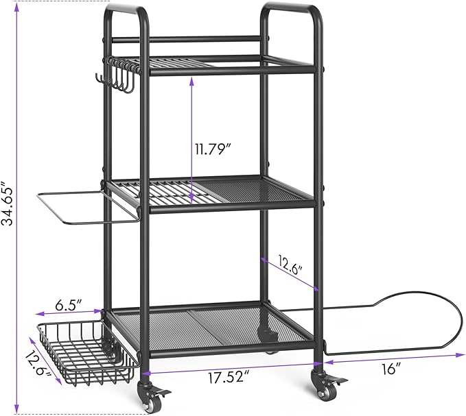 - [Versatile Home Gym Storage Solution] This versatile gym storage rack features 3 storage shelf, 3 layers of metal mesh, a side basket, 3-sectional iron holder and several hanging hooks to store your different sizes of yoga mats and fitness accessories and make your room tidy and beautiful, making it an ideal workout equipment organizer.