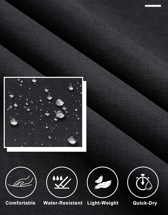 • Comfort Fabric: Lightweight, stretchy, quick dry, moisture wicking fabric keeps you dry and cool all day, gentle stretch and shape-retention, water-resistant capacity to help resist light rain for a short time. PS: Although the pants may arrive with some creases due to packaging, a simple water wash will eliminate them