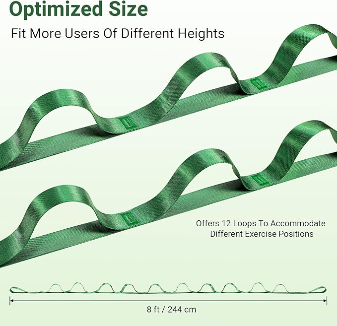 - ☞【Non-elastic】 This athletic yoga stretching strap with loops is non-elastic and durable, thus it can hold up well even under tension providing a reliable and self-controlled stretch. With this green stretch strap for fitness, self-stretching can be made much easier.