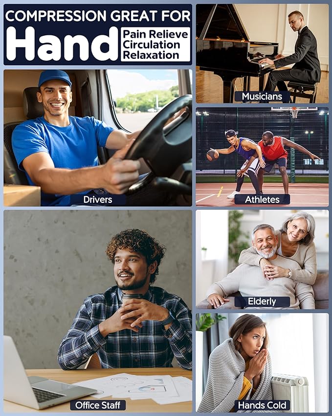 - 【Specialized Air Compression with Adjustable Wrist Support】 Unlike traditional models, our independent airbag design applies precise air compression to your hand and wrist, helping reduce strain from repetitive motions and improving circulation. The adjustable wrist strap provides a secure and comfortable fit, making it ideal for office workers, artists, and individuals experiencing wrist discomfort. Experience a gentle yet effective massage that enhances your overall hand relaxation and wellness
