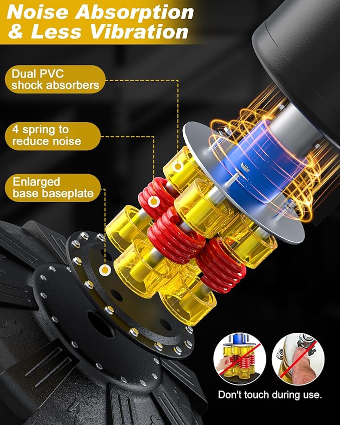 - Upgraded Shock Absorbing System - Dual TPU noise absorbers + 4 springs achieve 360° shock absorption. TIP: springs can be removed for less vibration to do intensive strength training.