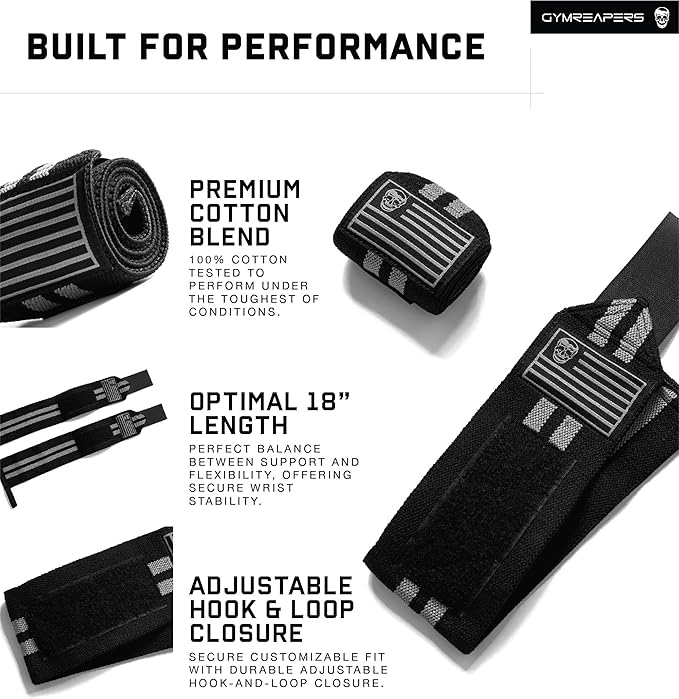 - TRUE TO SIZE 18" LIFTING WRIST WRAPS - Unlike other poorly made wrist wraps on the market that are cheap and flimsy, Gymreapers wrist wraps are true to length. This means you can get the highest level of tightness and support compared to shorter wraps. However, the length is not too long and will be allowed in competition if you are looking for the best wrist wraps for squat, bench, and deadlift.