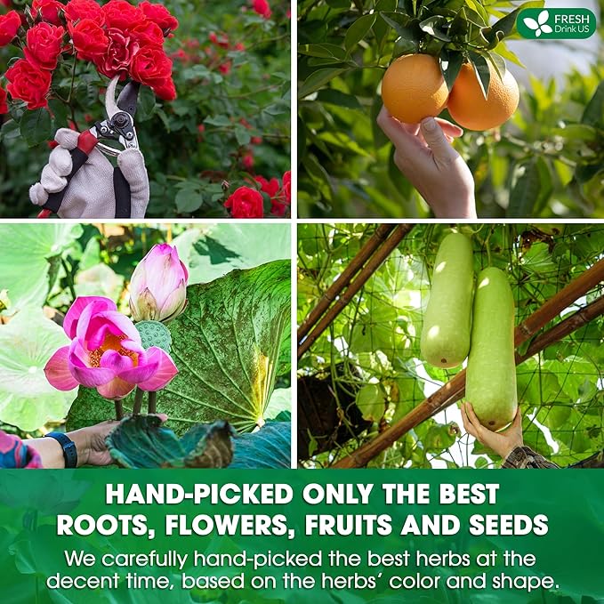 - ☘️ 100% NATURAL INGREDIENTS: Cassia Seed, Winter Melon, Lotus Leaves, Orange Peel, Licorice, Poria, Hawthorn, Gardenia, Tartary Buckwheat and Double Red Rose. We source the finest natural herbs to create our tea, made without additives or artificial flavors, ensuring you receive an authentic taste in every sip.