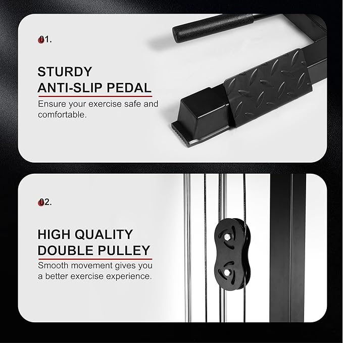 - 【Multi-functional LAT Tower】Set up with high and low pulleys for a variety of exercises, including seated rowing, seated and standing pull downs, biceps curls and other movements. Fully exercise your whole body muscles through training to meet your fitness needs.