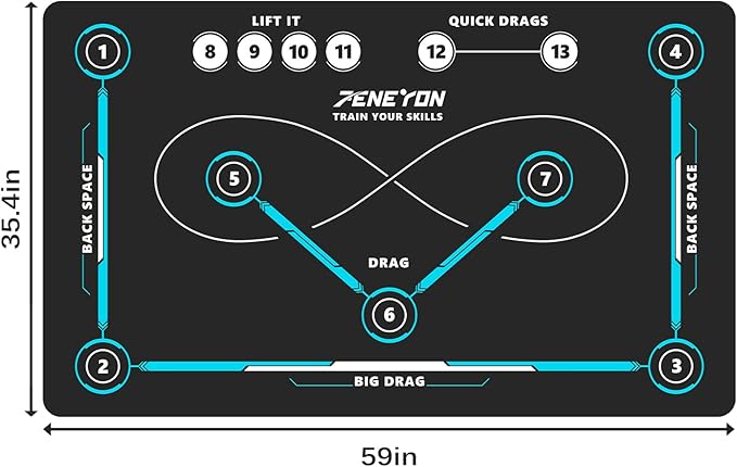 - SKILL-BUILDING TRAINING SYSTEM : This hockey training equipment pre-printed precision lines and numbered markers guide dribbling paths and rhythm control, scientifically improving hockey stickhandling speed, shooting power, and body coordination. Perfect for both pro athletes and beginners