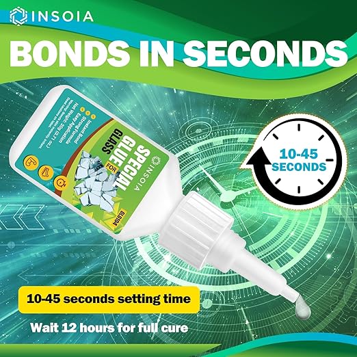 - ?¡【Fast-Drying & Waterproof?‘Time matters, and INSOIA glass repair glue delivers. Our super glue for glass features a quick-drying formula that sets in just 10-45 seconds, allowing you to complete repairs and projects in a flash. Fully cureing in 12-24 hours, it provides a waterproof finish, ensuring that your repairs hold up in humid environments. This mirror glue adhesive dries crystal clear, leaving no residue or discoloration, making it ideal for colorless glass surfaces and decorative items.