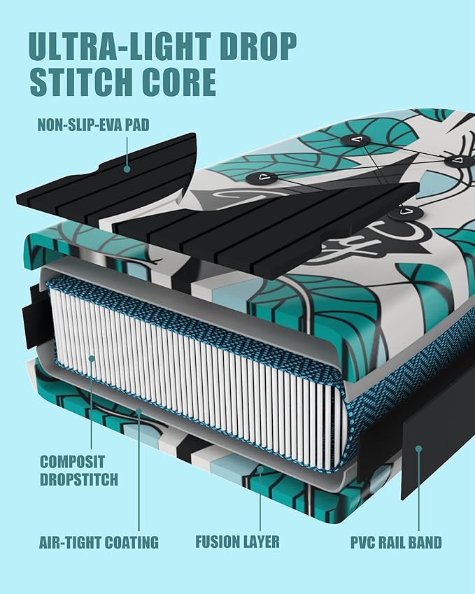 - 【Complete Paddle Board Accessories】Dixero inflatable paddle board comes with all the necessary sup accessories to get started right away, including 3 detachable fins,collapsible length adjustable floating paddle, 1 safety leash, 1 pump,1 sup backpack, 1 waterproof phone bag,and 1 manual to help you use the paddle board in all directions, gliding feel on the water making for a more enjoyable, relaxing experience.