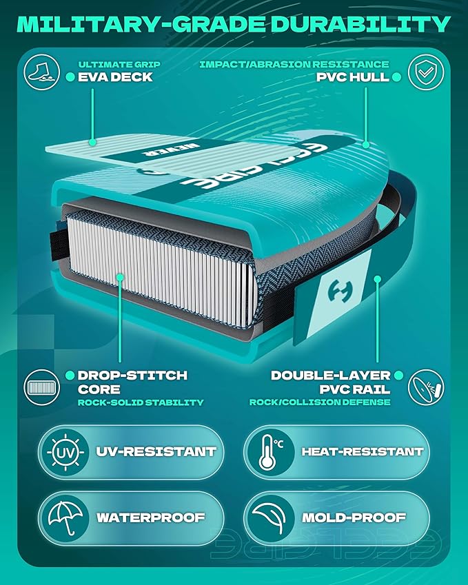 - ใ๐ ๐ถ๐น๐ถ๐๐ฎ๐ฟ๐-๐๐ฟ๐ฎ๐ฑ๐ฒ ๐ฃ๐ฉ๐ ๐ฎ๐ป๐ฑ ๐ก๐ผ๐ป๐๐น๐ถ๐ฝ ๐๐ฉ๐ ๐ณ๐ผ๐ฟ ๐๐ผ๐ป๐ด-๐๐ฎ๐๐๐ถ๐ป๐ด ๐ฃ๐ฒ๐ฟ๐ณ๐ผ๐ฟ๐บ๐ฎ๐ป๐ฐ๐ฒใ Featured with military-grade PVC and advanced drop-stitch, the Feelfire paddleboard is built for rugged conditions. Such as rocky rivers or exposure to saltwater and sunlight. The EVA diamond-patterned surface enhances foot traction and quick drainage, reducing slip risk. This design helps paddlers easily adjust their stance and center of gravity in windy or wavy conditions.