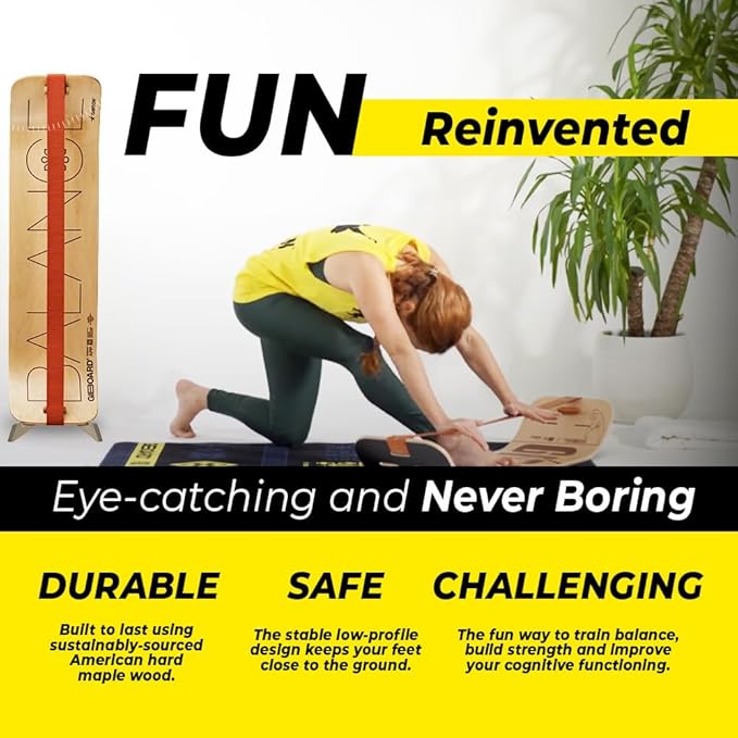 - SUSTAINABLY CRAFTED FOR LASTING QUALITY: The exercise board is meticulously crafted from sustainably harvested maple wood in the United States. Committed to minimal environmental impact, this adult and kids balance board offers unparalleled durability. The sleek, aesthetic design of the home fitness board and the included stand accessory enhances any space, providing a stylish yet enduring addition to your home exercise equipment.