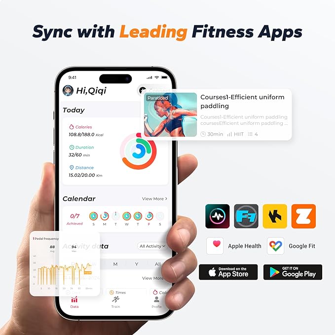 - Real-time Fitness Tracking: The exercise bikes for home connects with the self-developed MERACH APP and FantomFite gaming app. Monitor key workout stats in real time, including resistance level, distance, time, calories, and BPM. Easily sync your data with Google Fit and Apple Health for a more complete fitness overview
