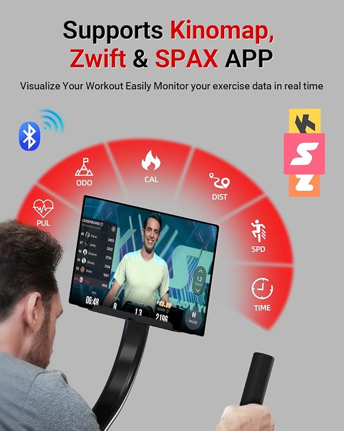 - Stationary Bike with Smart Bluetooth Connectivity: Elevate your fitness routine with HARISON’s Intelligent Technology. The HR-X8 magnetic exercise bike seamlessly syncs with professional fitness apps, offering immersive route simulations and expert-guided training sessions. Track real-time metrics like TIME, SPEED, RPM, DISTANCE, and CALORIES BURNED, empowering you to optimize your workouts and achieve your goals.
