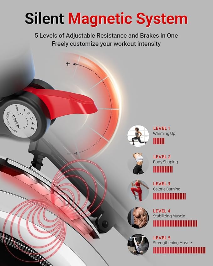 - Advanced Magnetic Resistance System:The HARISON US Magnetic mute System revolutionizes your workout with 5 resistance levels, allowing you to customize intensity to match your fitness goals. Designed for precision and smooth operation, this magnetic resistance mechanism ensures a whisper-quiet ride, making it perfect for any time of day without disrupting your household.