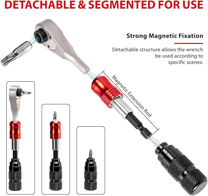- Durable Alloy Construction & Magnetic Snap-On Design: Crafted from high-strength alloy for lightweight durability, its magnetic assembly design enhances operational stability, prevents bit detachment, and ensures reliability in rugged outdoor environments.