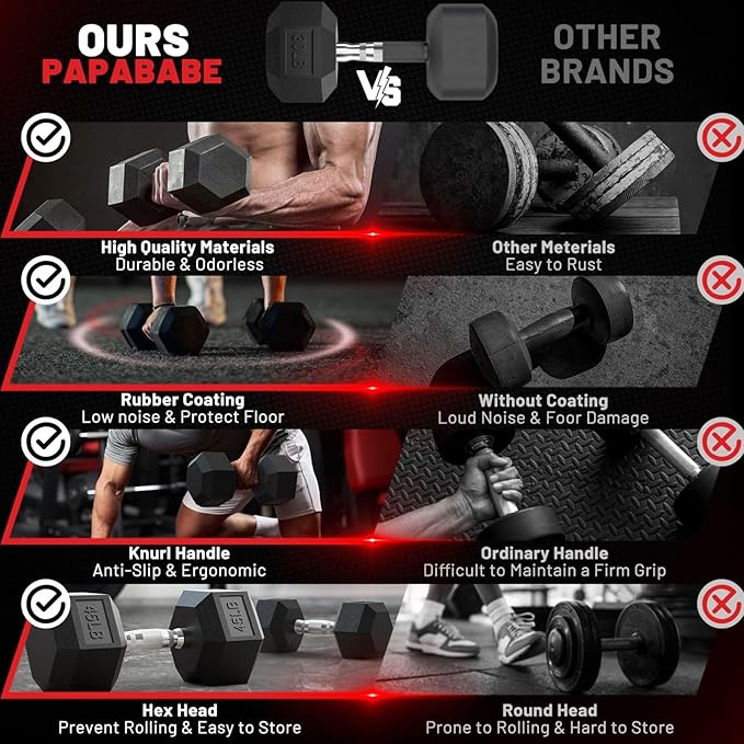 PAPABABE Hex Dumbbell Set 45-550 lb, Rubber Encased Home Gym Dumbbells, Weights Dumbbells for Women & Men, Hand Weight for Strength Training