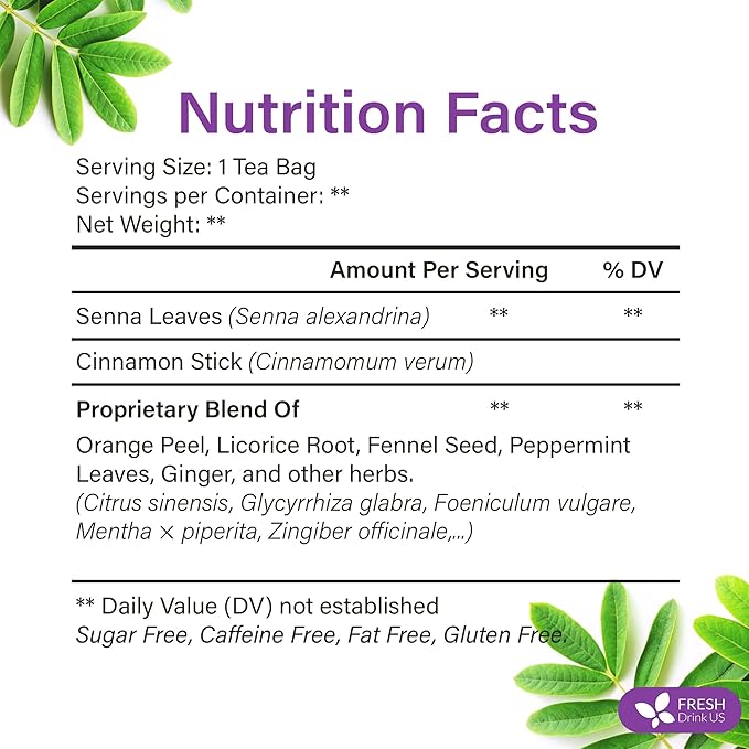 FreshDrinkUS, Fresh Move Tea β 40 Tea Bags - Herbal Tea Blend with Senna Leaves, Cinnamon, Orange Peel, Ginger & More β Caffeine-Free, Natural Ingredients β Smooth Flavor for Everyday Enjoyment